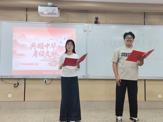 为弘扬中华优秀传统文化,进一步激发学生对中华经典的热爱,4月20日,色播 于11号教学楼A304教室开展“典耀中华,赓续文脉”中华经典诵读活动,2023、2024级部分同学参加。