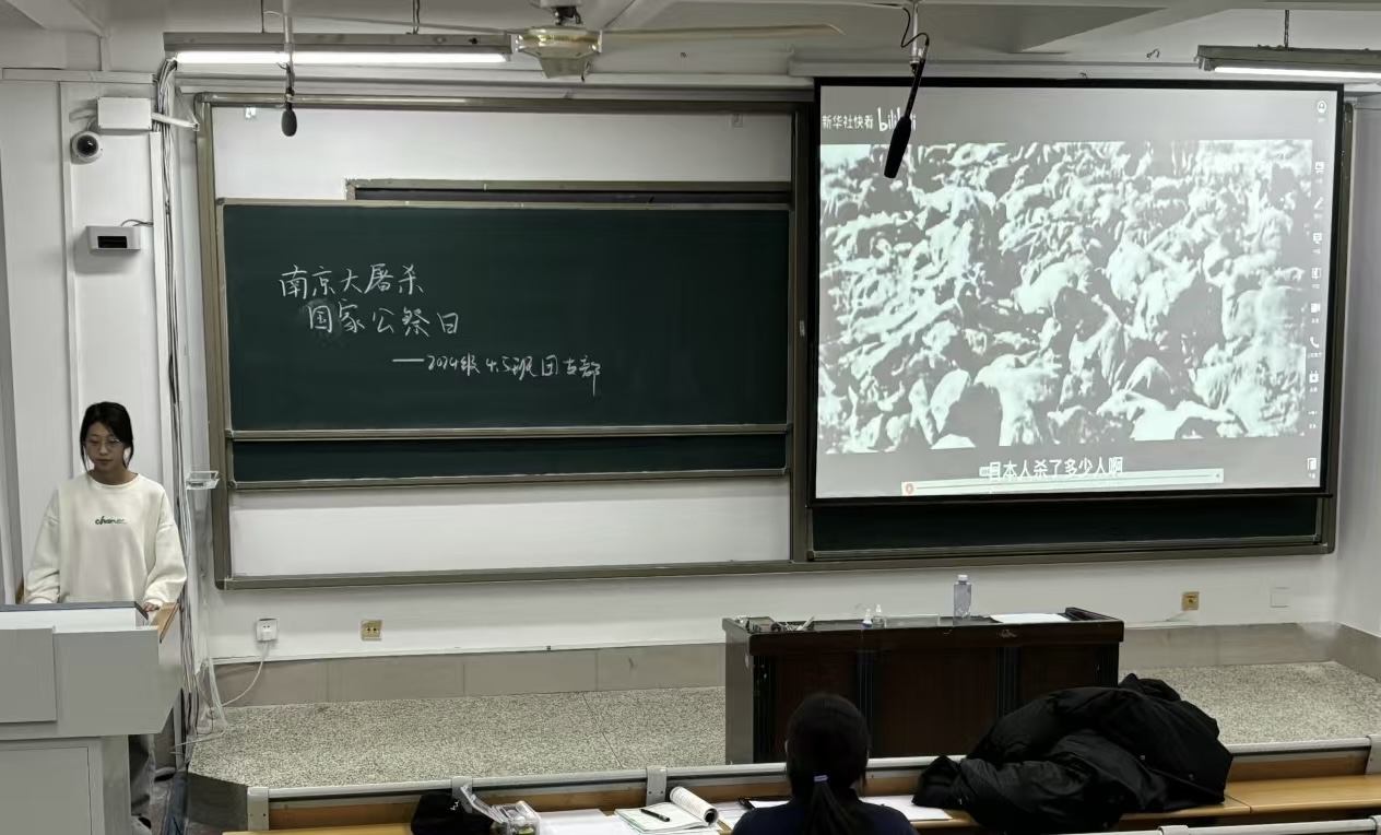 色播 2024级4班于11号教学楼A204教室开展“勿忘国耻,振兴中华”国家公祭日主题团日活动,由团支书孙若琪主持。团课伊始,全场肃穆默哀一分钟,向遇难的30余万同胞致以沉痛哀悼,气氛凝重悲怆。随后,以影像资料深度还原那段惨绝人寰的历史:日军暴行下,南京城生灵涂炭、哀鸿遍野,血腥场景震撼着在场每一位同学的心灵,侵略者的罪恶铁证如山,不容置疑与忘却。活动尾声,学生宣誓,誓言铿锵有力,“勿忘国耻,振兴中华”的呼声响彻教室,彰显出青年群体捍卫历史真相、勇担时代使命的坚定决心。此次团课强化了学生对国家公祭日的认知,激励莘莘学子将悲愤化作前行力量,为中华民族伟大复兴矢志拼搏。