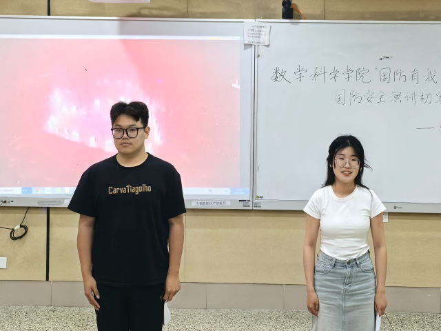 同学们结合自身经历和感悟讲述自己对国防安全的理解,在诵读《以青春之名,筑国防长城》时,刁新颖声音铿锵有力,展现出青年愿以青春热血守护家国的坚定信念;在朗诵《青山处处埋忠骨,青春逐梦献国防》时,郝文青、厉彦凯的语调饱含深情,将先辈们为国防事业舍生忘死的奉献精神娓娓道来;在演绎《以青春之名,铸国防重器》时,潘越以激昂的语气生动描绘出青年投身国防科技建设的壮志豪情。