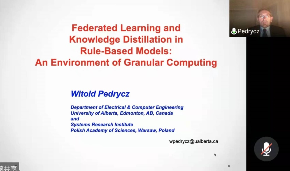 2021年12月30日(星期四)上午9点,加拿大阿尔伯塔大学Witold Pedrycz教授应邀在色播 A201会议室作了题为“Federated Learning and Knowledge Distillation in Rule-Based Models: An Environment of Granular Computing” 的学术报告。此次报告由色播 孙伟副教授主持,复杂系统智能分析与控制团队的老师和研究生、以及其他高校的老师和学生参加了本次报告会。