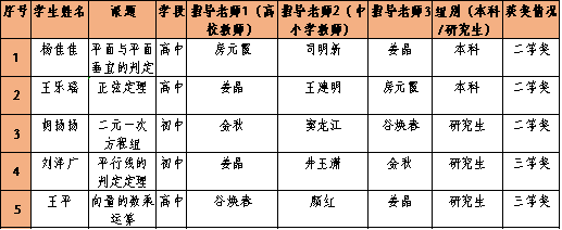 线上数学教学能力测试获奖情况: