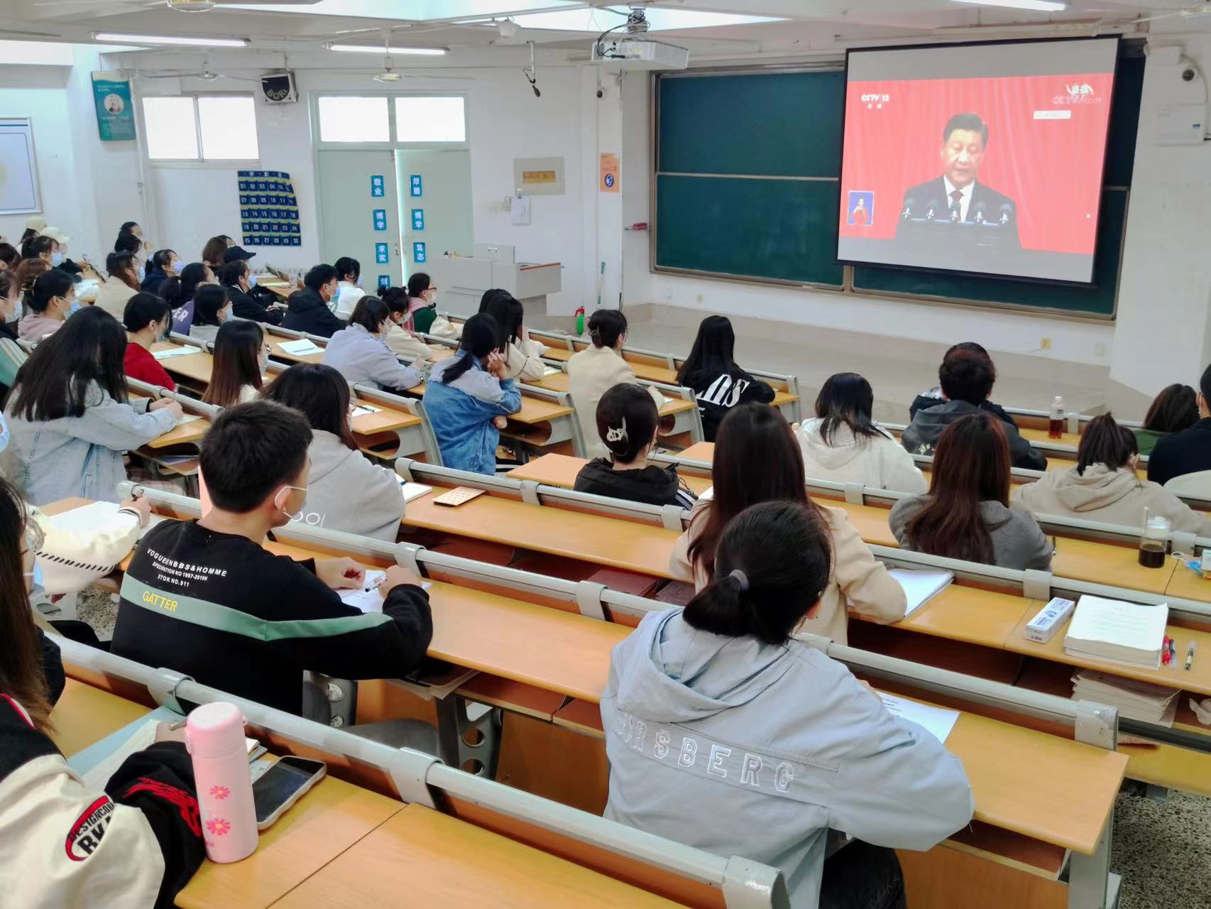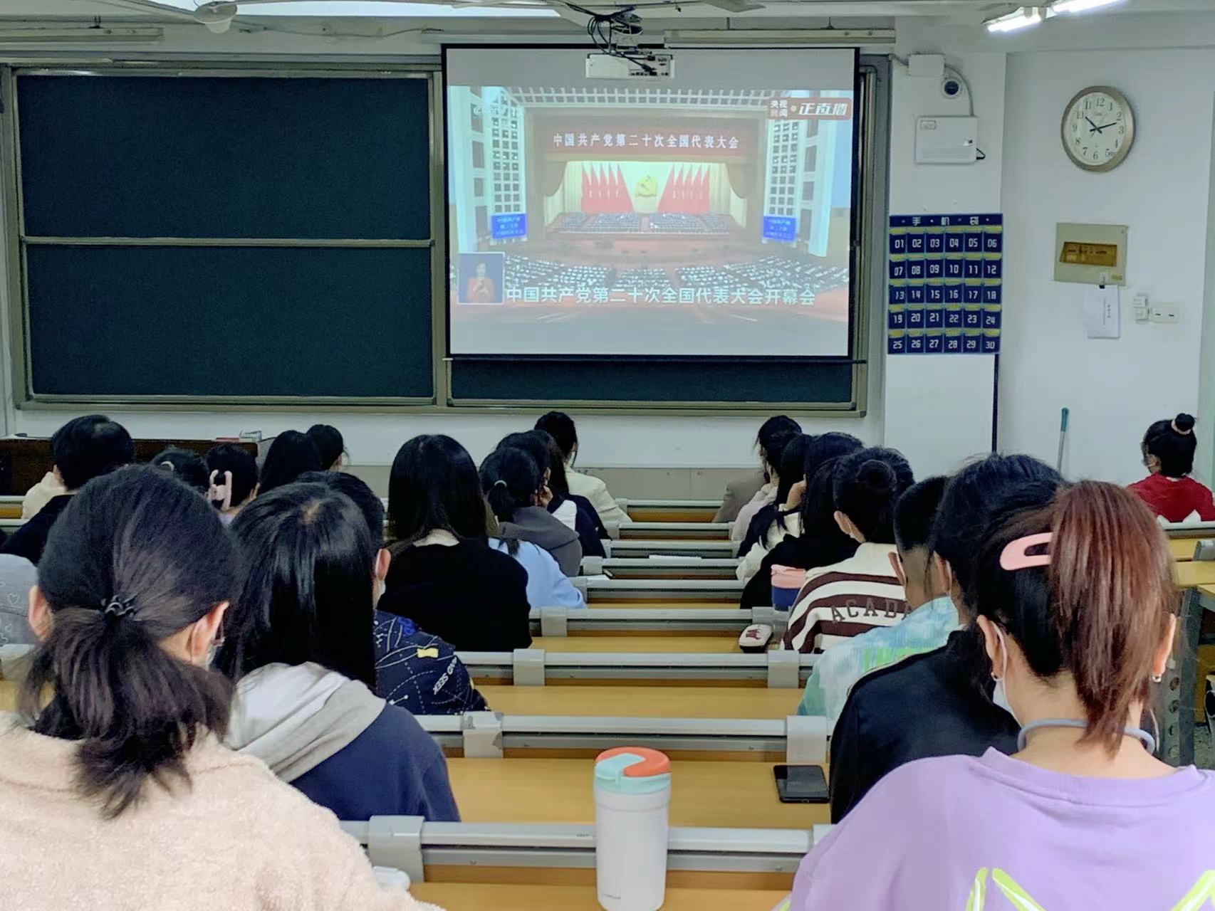 10月16日上午,色播 在学院党委领导班子带领下,组织全体辅导员、班主任、师生党员、入党积极分子、学生干部于西校区11号教学楼集中收看了中国共产党第二十次全国代表大会开幕会盛况。