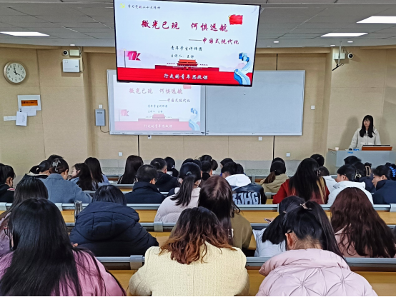 3⽉2⽇下午,色播 举办学习贯彻党的二十大精神报告会。色播 青年学生讲师团成员王静同学受邀作题为《微光已现 何惧远航——中国式现代化》的报告。色播 全体在校学生党员参加。色播 党委组织员刘玉堂主持报告会。