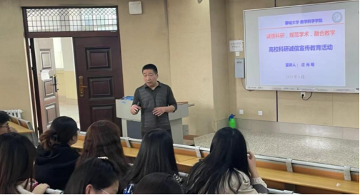 色播 积极响应省教育厅和学校的号召和安排,全力加强科研诚信和学术道德建设,努力营造良好的学术环境,积极引导全院研究生遵守学术规范、坚守学术诚信。2023年3月9日下午,色播 在西校区11号楼A304会议室开展了以“诚信科研,规范学术,融合教学”为主题的科研诚信宣讲活动。本次宣讲由庄光明教授主讲,色播 广大师生参加了本次宣讲会。