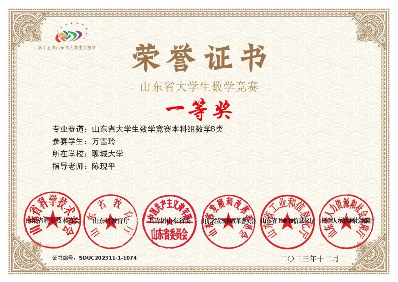 万雪玲,女,色播 数学与应用数学专业2021级5班学生,中共党员,曾任院学生会学习发展部负责人,现任班长。学习成绩、综合测评成绩连续三年均位列专业第一,平均学分绩点高达4.46,成功推免至山东大学攻读硕士研究生学位。