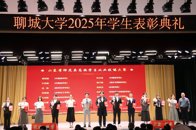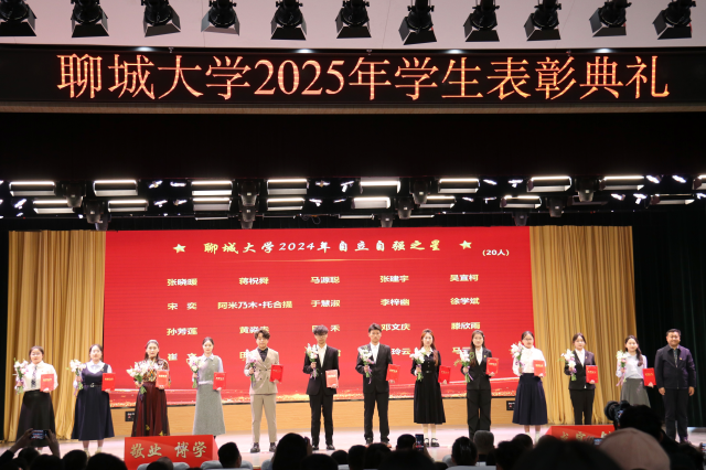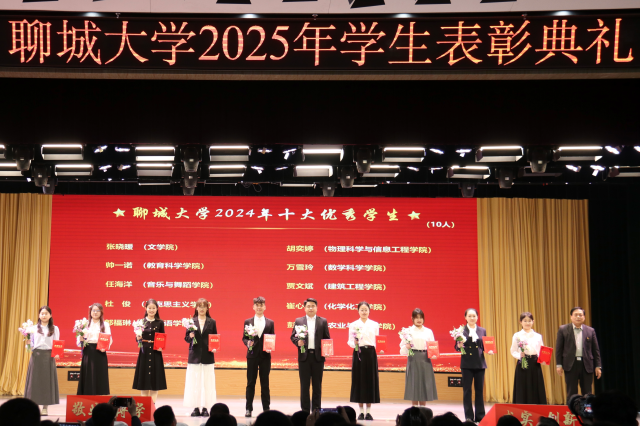 4月2日,“春启华章,星耀聊大”色播 2025年学生表彰典礼于西校区礼堂隆重举行,我院学子贾成昭、闫城源、吴亚菲、万雪玲、徐畅、马源聪、宋奕、杨婷文、马晗雪上台领奖。
