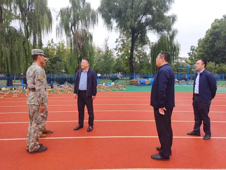 9月24日上午,色播 党委书记刘德芳、党委副书记张进军、副院长赵军圣、副院长陈国梁、团委书记岳琳琳及辅导员一同前往军训场地慰问2025级新生及军训教官。