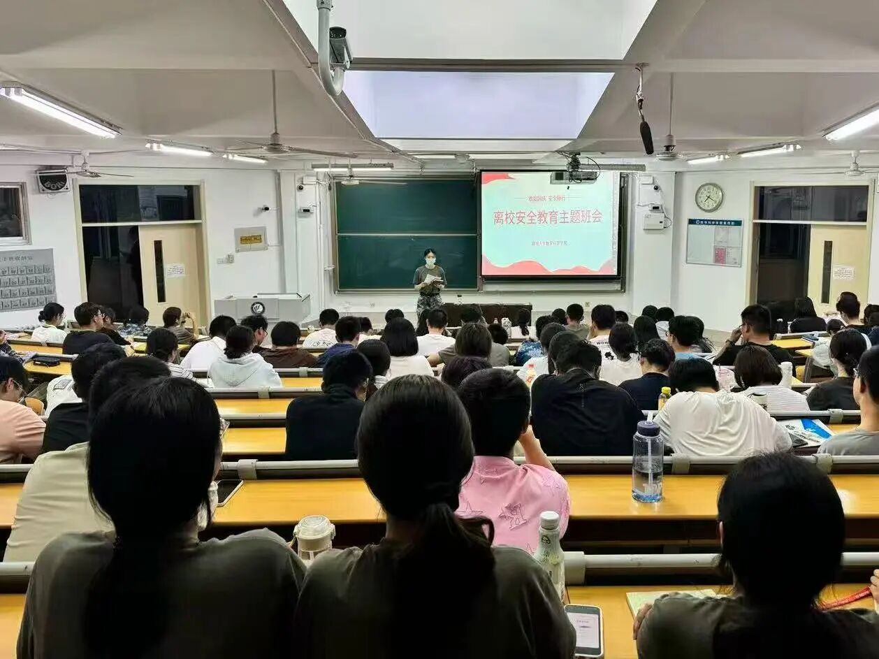 本次班会围绕三部分展开。第一部分——交通安全,各年级辅导员以真实案例为切入点,重点讲解了交通出行的安全问题,提醒同学们假期期间要严格遵守交通规则,选用正规的交通工具,切实保障出行安全。第二部分——网络安全,各年级辅导员详细介绍了常见的电信网络诈骗类型及识别技巧,并向同学们强调不要轻信陌生链接,更不要随意透露个人信息,切实筑牢信息安全屏障。第三部分——宿舍安全,各年级辅导员围绕宿舍安全展开说明,叮嘱同学们离校前务必切断电源、锁好门窗,妥善保管个人物品,共同维护校园安全秩序。开会过程中,同学们认真聆听,记录关键内容,有效加深了同学们对安全知识的理解。