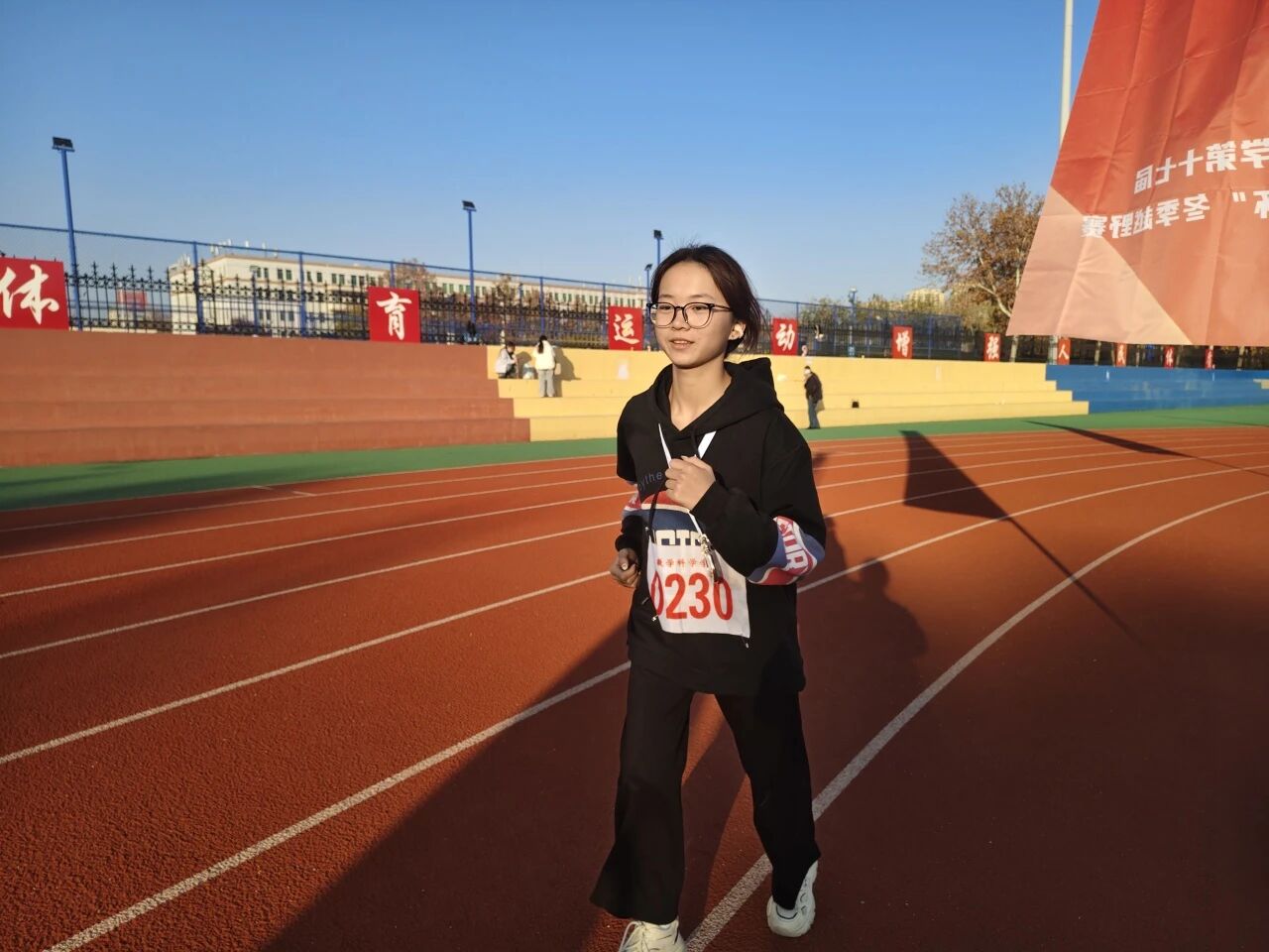本次越野赛分为男子和女子两个组别,男子组比赛路线全长10公里,女子组比赛路线全长5公里,以西校区南田径场西跑道为起点,东跑道为终点,赛道沿线精心设置了多个服务点,贴心准备了矿泉水、电解质饮料和毛巾,为越野赛保驾护航。当发令枪的声响划破天空,选手们如潮水般冲出起点,在冬日的暖阳里、炽热的青春中肆意奔跑。比赛过程中,运动员们精神饱满、斗志昂扬,在赛道上奋力拼搏、你追我赶,他们步伐轻盈,调整呼吸,掌控着自身的跑步节奏。临近终点,同学们汗水早已浸湿运动服,却始终紧咬牙关,目光坚定冲向终点。冲线那一刻,参赛者脸上洋溢着超越自我的喜悦。
