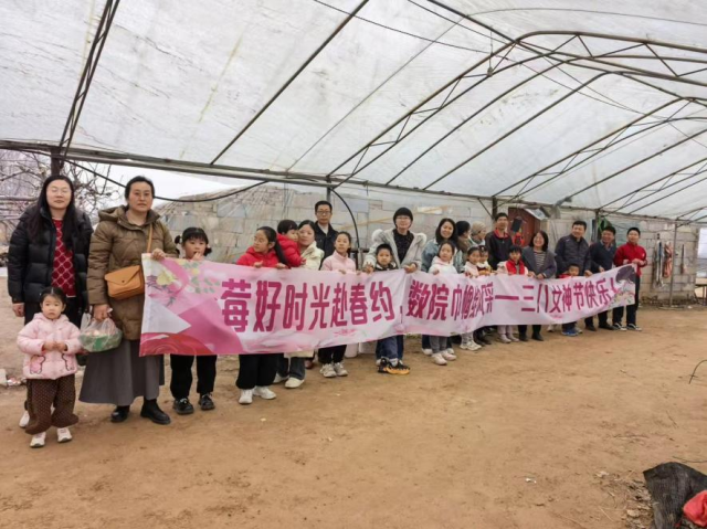 活动伊始,学院领导代表学院向全体女教职工致以诚挚的问候和节日的祝福。活动现场,女教师们携子女走进温室大棚,大家手提果篮,精心挑选成熟诱人的果实,在轻松惬意的氛围里与同事畅谈工作日常、分享生活趣事;孩子们则在一旁嬉笑追逐,沉浸式体验采摘的快乐与自然的美好。欢声笑语萦绕其间,温馨暖意充盈心间,定格成节日里最温暖动人的美好画卷。